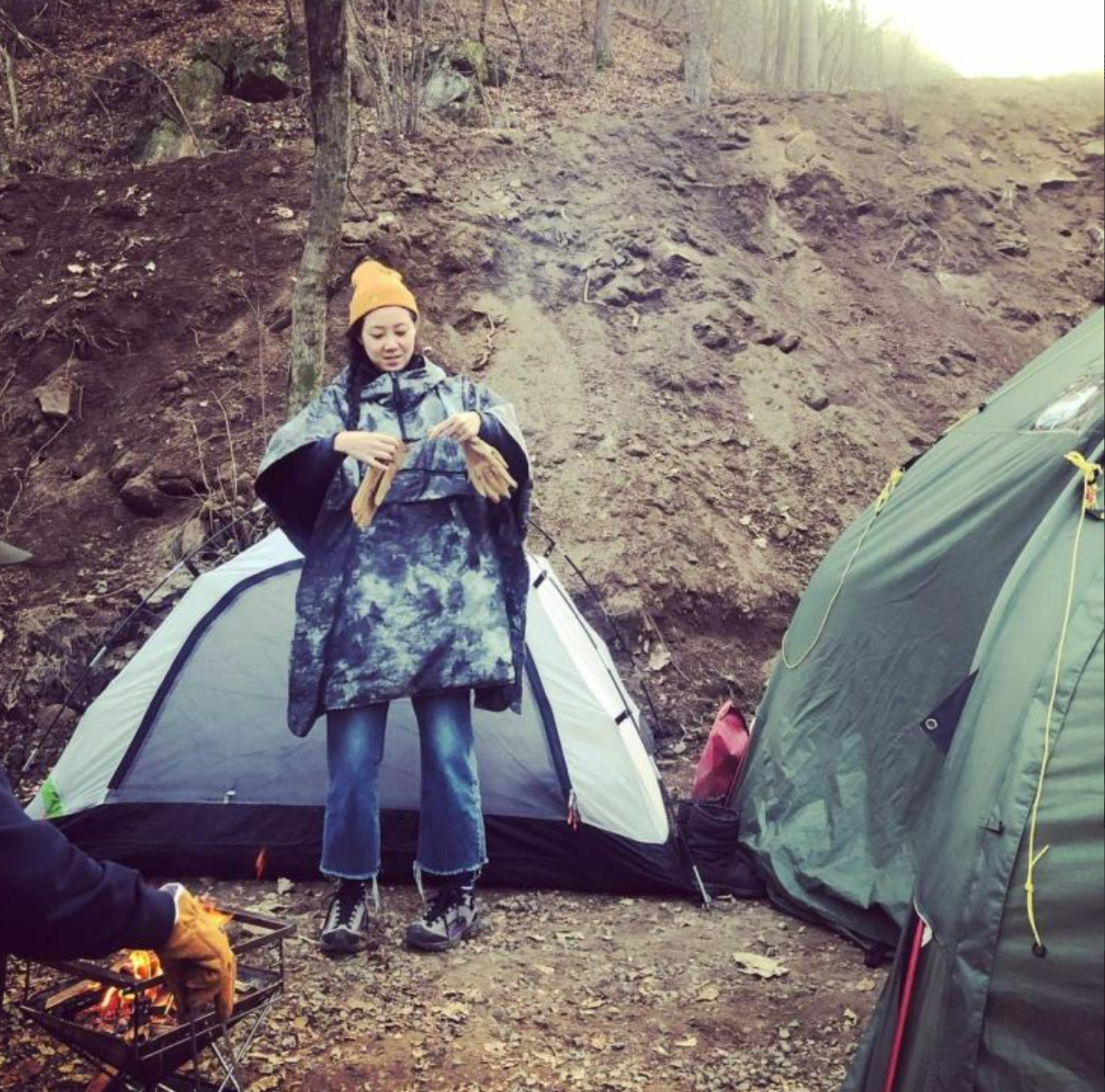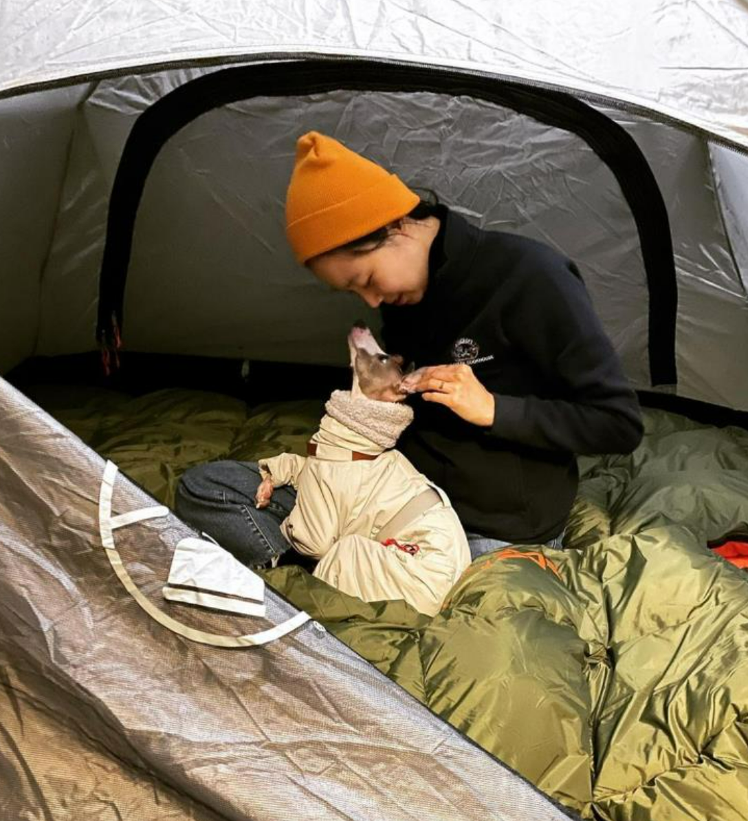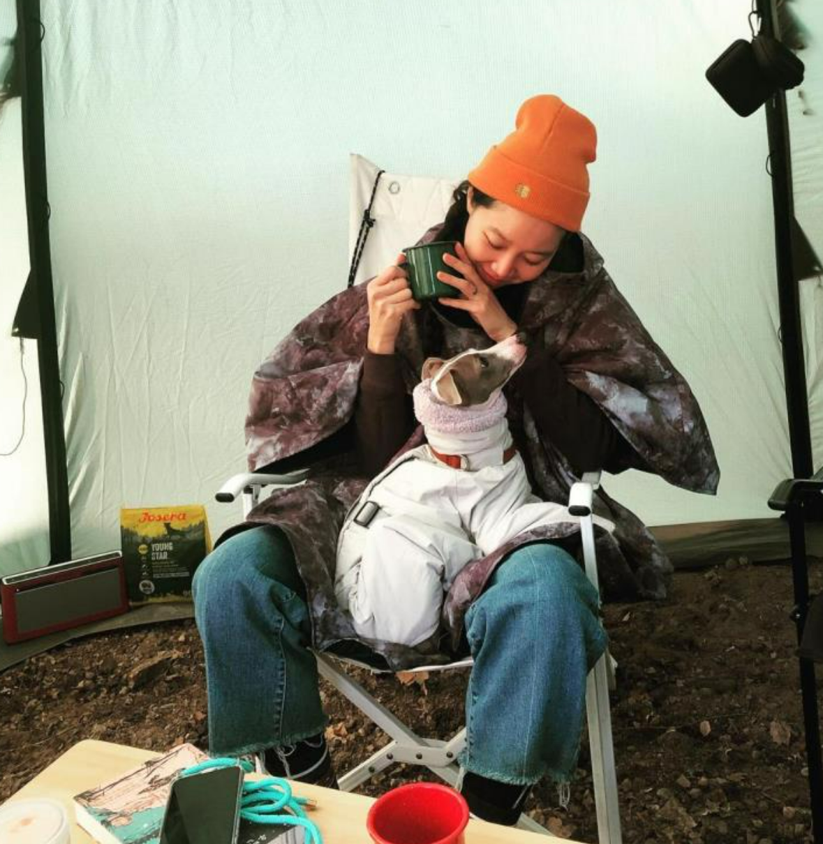 공효진은 반려견 요지와 함께하는 특별한 캠핑을 떠났어요. 두툼한 패딩 점퍼를 입은 요지를 무릎에 올려두고 캠핑용 컵에 담긴 커피를 즐기고 있는 그의 모습이 마치 화보의 한 장면 같네요. 산 중턱에 텐트를 치고 화 롯데에 불을 피우며 느긋한 시간을 보내는 공효진의 캠핑 사진들 속 패션도 눈에 띄는데요, 캠핑 환경을 고려해 보온성은 유지하면서 두 팔을 자유롭게 움직일 수 있는 판초를 선택했어요. 입고 벗기 편한 데다 담요처럼 몸을 감싸는 디자인이 쌀쌀한 겨울 날씨에 유용할 것 같죠? 자신의 이름을 컬러플한 물감으로 손가락마다 그려 넣은 방한 가죽 장갑을 준비한 센스까지! 개성 넘치는 패션 센스가 캠핑 사진 곳곳에서 빛납니다.