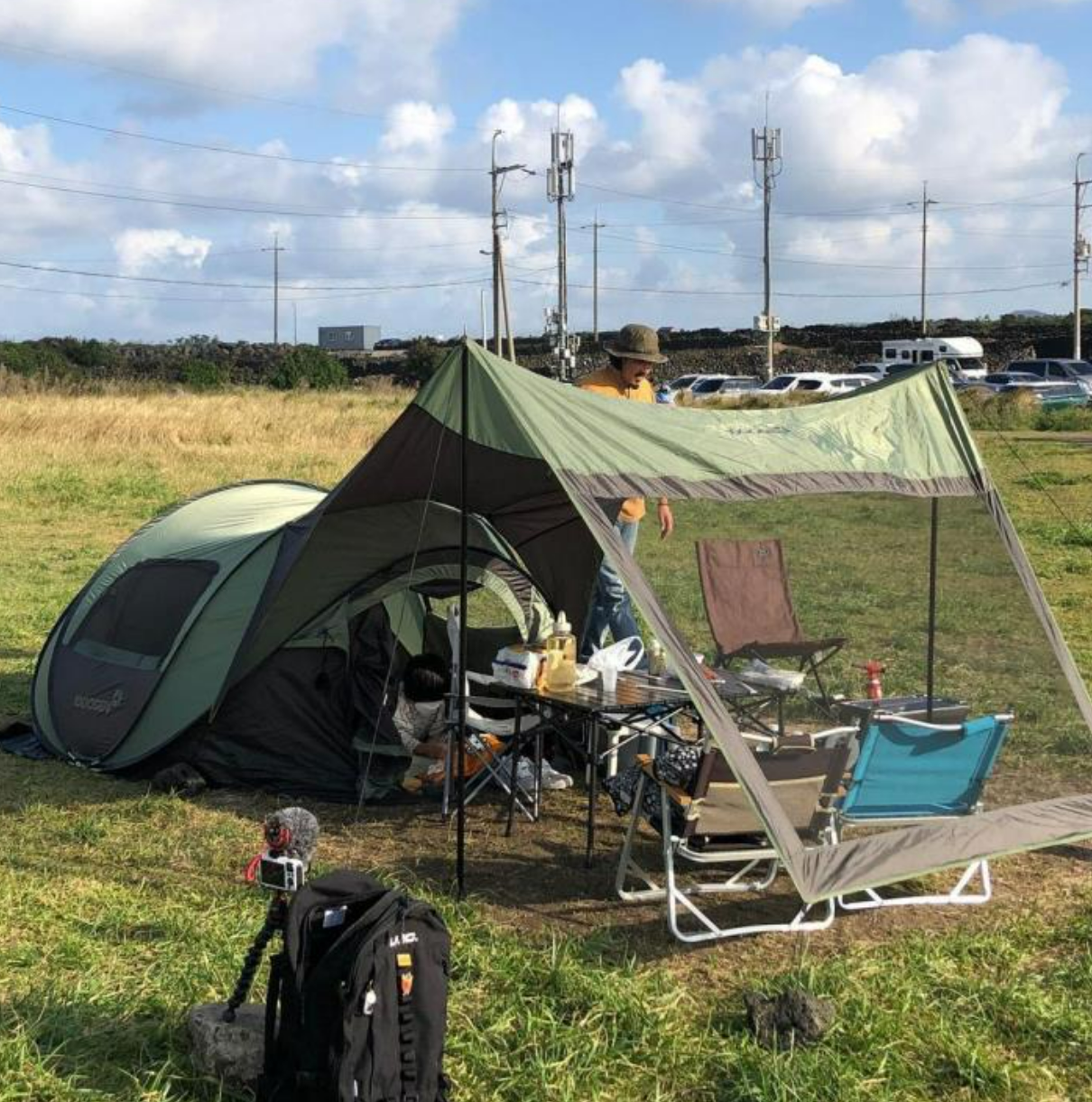 모델 고소현은 제주 해변에서 캠핑을 즐겼어요. 하늘을 붉게 물들이는 아름다운 일출과 일몰을 감상할 수 있는 해변 캠핑은 상상만 해도 로맨틱합니다. 그녀가 캠핑을 즐긴 곳은 김녕의 성세기 해변 캠핑장인데요, 바다 바로 앞에 있어 탁 트인 경치와 파도 소리를 들으며 힐링할 수 있는 특별한 캠핑 스폿입니다. 넓고 탁 트인 잔디밭에 텐트를 치고 그늘막인 플라이를 연장한 캠핑 사이트가 아늑해 보이네요. 해변 캠핑은 바람이 강하게 불어 방한에 신경 써야 하는데요, 고소현은 페이즐리 패턴의 두툼한 패딩 점퍼의 후드를 푹 눌러쓰고 밤새 친구들과 이야기꽃을 피웠다고 합니다.