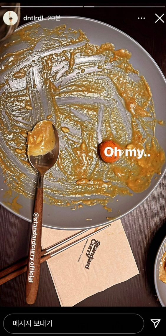 흡족한 미소와 함께 인증샷을 남긴 배우 이진욱. 이렇게 미소짓게 만드는 스탠다드 커리의 독특한 레시피 정말 궁금합니다.