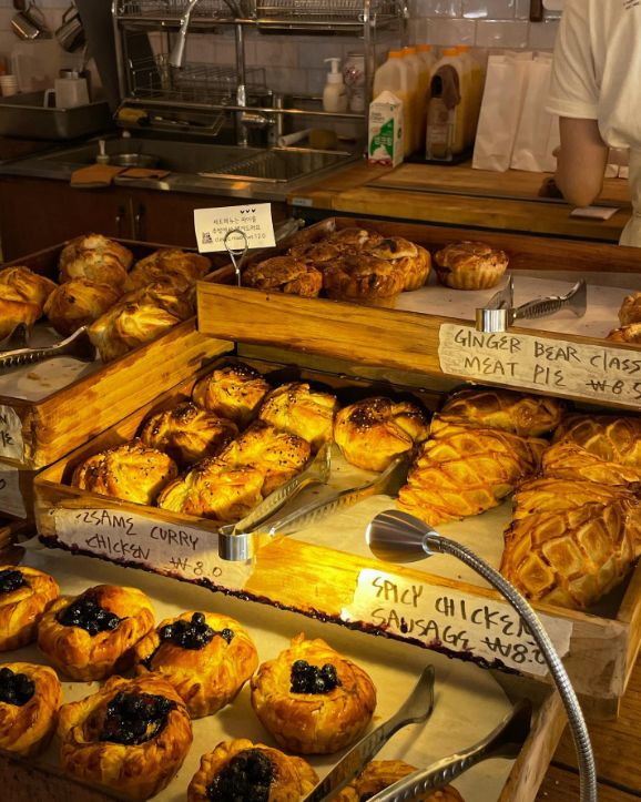 최근 잠실에 오픈한 신상카페 진저베어! 글루텐 프리 디저트로 유명한 카페페퍼 사장님이 2호점으로 낸 곳이기도 해. 대표 메뉴는 파이! 20종의 스윗파이와 키쉬, 갈레트, 6종의 미트파이를 판매하는 베이커리 카페로 빵 좋아하는 세둥이라면 안 갈 수가 없는 곳입니다.