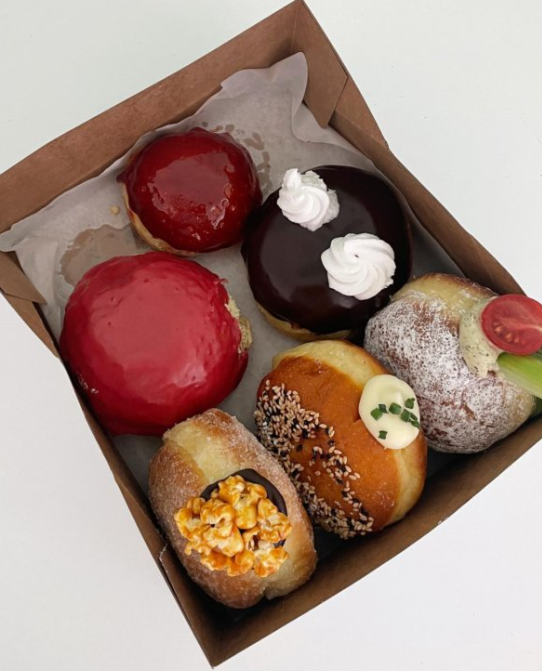 이곳에선 다양한 도넛 21가지를 골라 먹을 수 있습니다. 많은 종류에 선택이 고민스럽다면, 시그니처 메뉴 바질 & 토마토 도넛을 추천합니다. 도넛 안에 숨겨진 토마토와 그 위에 얹은 바질 크림의 조화가 매력입니다.