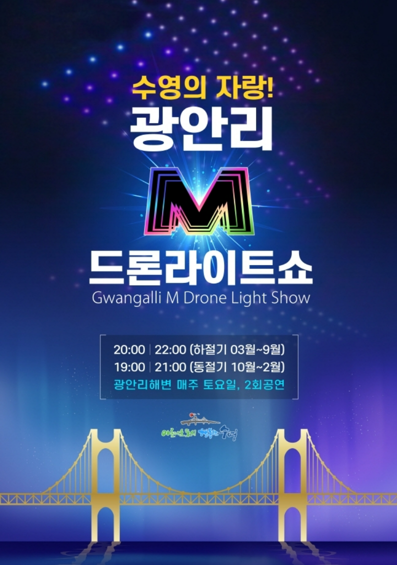 무려 300대 이상의 드론이 수놓는 불빛 아름다운 부산 밤바다와 반짝이는 광안대교 의 야경은 덤으로 보세요