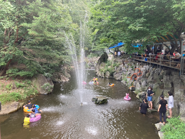 수량이 풍부하고 수심이 무릎 정도로 낮아, 가족끼리 편안하고 안전하게 시간을 보낼 수 있다. 계곡은 용현자연휴양림 쪽으로 가까이 갈수록 울창하고 깊어진다.