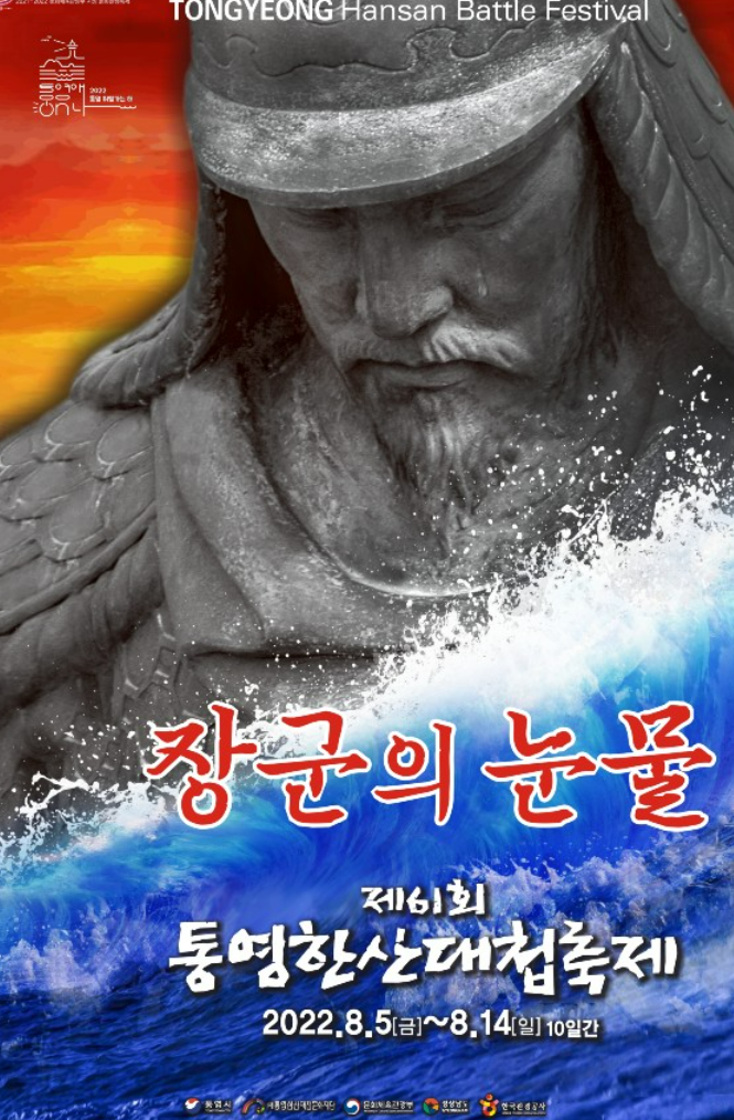 제61회 통영한산대첩축제 포스터는 임진왜란 발발 및 한산대첩 430주년을 맞이하는 가운데 1592년 음력 7월 8일 전라좌수사 이순신과 경상우수사 원균, 전라우수사 이억기 등 연합함대가 와키자카 야스하루가 이끄는 왜 수군의 주력함대와 한산도 앞바다에서 벌어진 전면전이 강한 역조류를 이겨내고 승리했으나, 이순신 장군의 고뇌는 끝나지 않았음을「장군의 눈물」콘셉트로 축제에 반영하고자 했다.