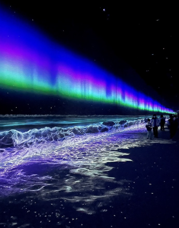 오로라가 펼쳐져 있는 '파도방'은 진짜 파도를 보는 것 같은 착각을 줍니다. 바닥에서도 파도가 밀려오고 하늘의 펼쳐져 있는 파란색과 초록색의 오로라는 이러한 파도를 한 층 더 아름답게 만들어 줍니다.