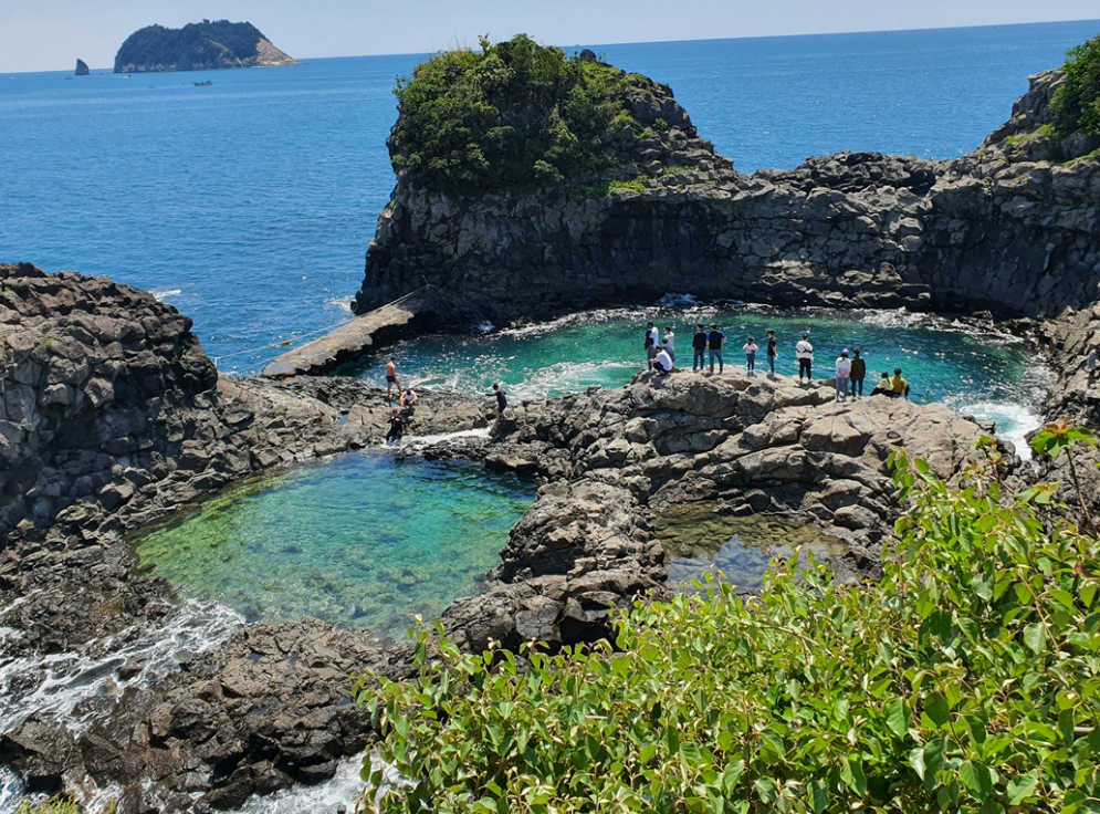 검은 현무암이 마치 요새처럼 둘러쳐진 황우지해안은 마음먹고 찾지 않는 이상 쉽게 눈에띄지 않는 곳임에도 불구하고 아주 많은 사람들이 방문하는 명소가 되었는데요 .