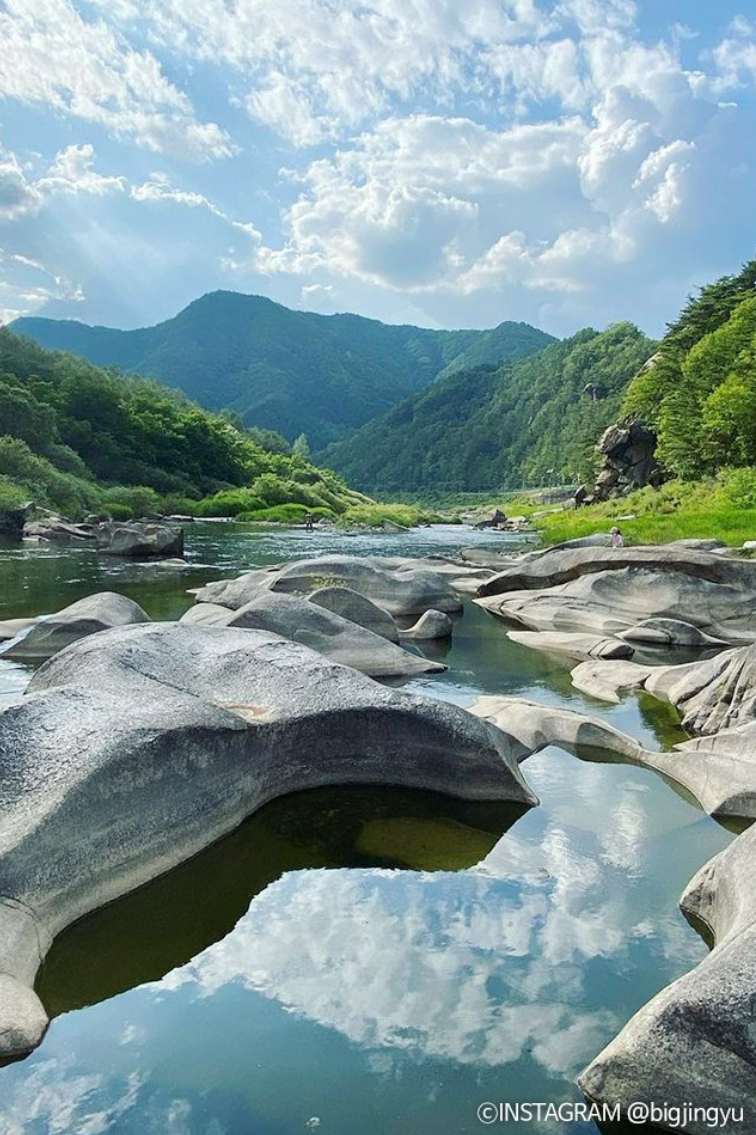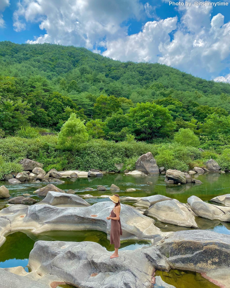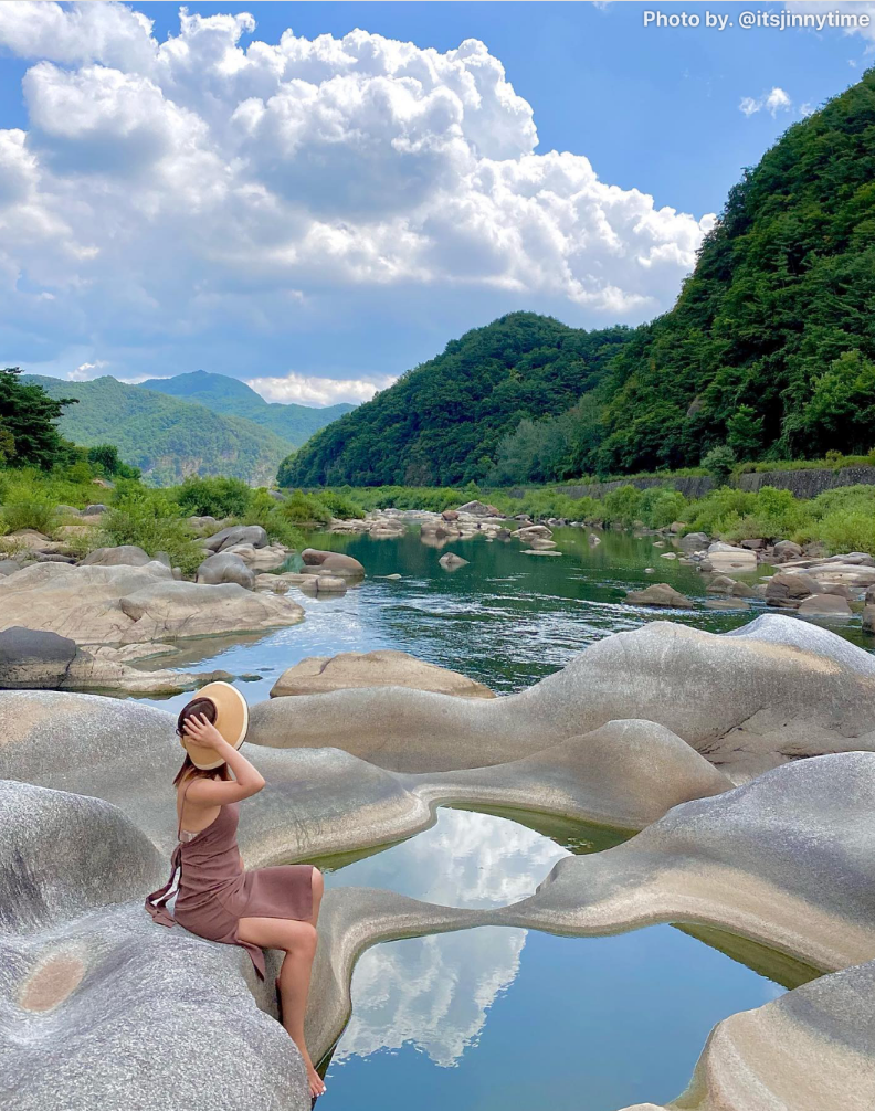 소용돌이치는 물살로 암반이 깎여 형성된 것이라고 합니다.