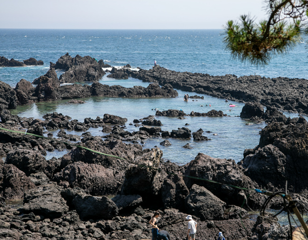 용암석이 동그랗게 주변을 애워 싸놓아서 천연 방파제 역할을 해주기 때문에 파도가 있는 날에도 안전하게 물놀이를 할 수 있는 곳이라 스노클링 초보자들이나 아이들에게 좋을 것 같은데요. 다만 바닥이 온통 돌이다 보니 부주의로 긁히는 상황이 종종 있었던 것 같으니 조심해서 물놀이를 해야 할 부분이 있습니다.