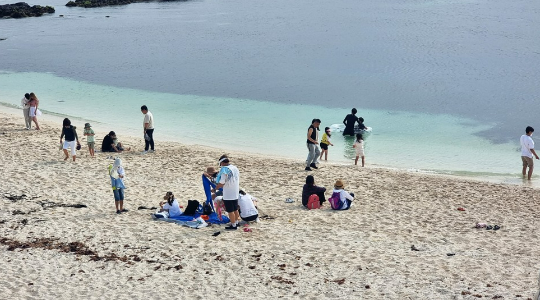 우도 산호해수욕장에 제주도 스노쿨링을 즐기는 사람들도 많다고 한다!