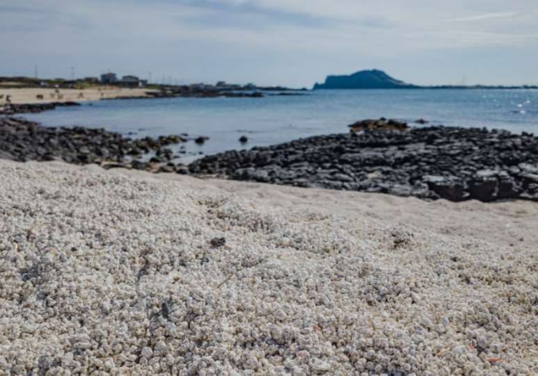 우도의 산호해수욕장의 하얀 모래는 해양 조류 중 하나인 홍조가 해안으로 쓸려와 퇴적된 것으로 홍조단괴 산호 해변으로도 불린다고 한다.