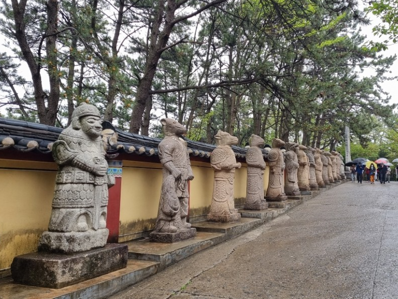 사찰로 가는 입구에 가디언인 12지신상이 보입니다.전방에 석탑이 하나 보일 것이다. 석탑을 끼고 왼쪽으로 방향을 꺾으면, 용궁사로 이어진다.