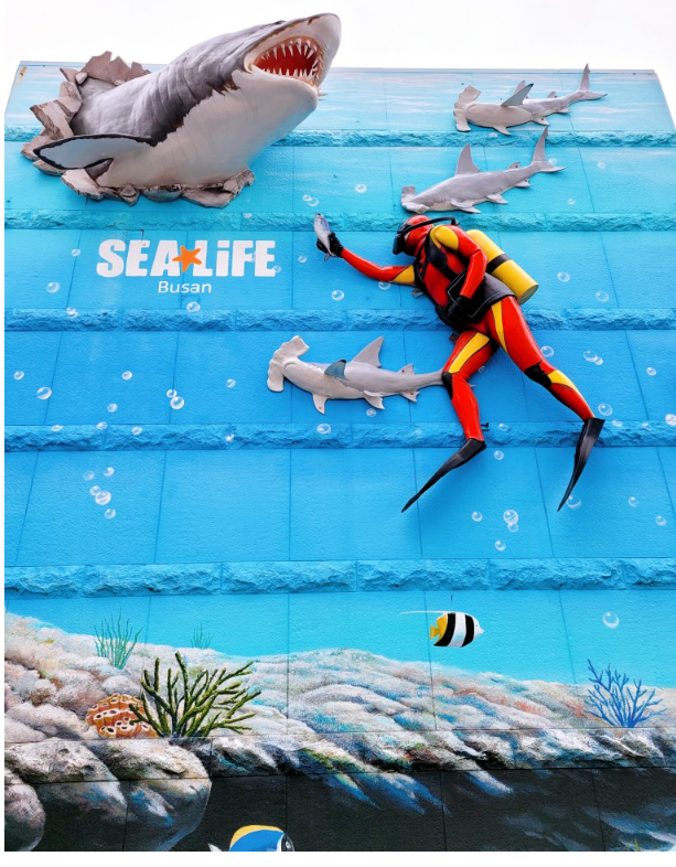 부산 씨라이프 부산 아쿠아리움에서 포토존 중에서 가장 인기있는곳 입니다. 주말에는 줄 서서 사진 찍는 포토 맛집입니다.