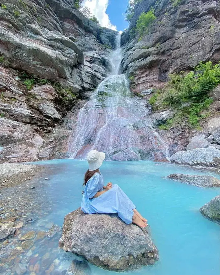 미인폭포를 다녀온 이들은 물의 색상과 비슷한 하늘색이나 하얀색 의상을 입는 걸 추천한다.