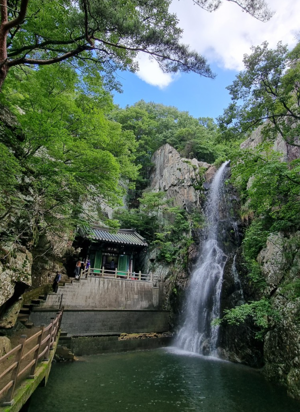 폭포와 어우러진 관음전과 다리의 조화가 아름다운 이곳입니다.