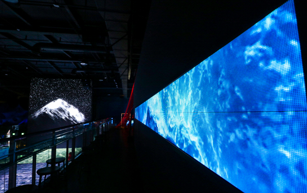 총 16개의 미디어 아트 영상이 상영되는 ‘미라클 가든’은 뮤지엄 원의 메인 홀이자 국내 최대 LED 미디어 월인데요. 음악이 시작되면, 무지갯빛 빛깔이 미라클 가든을 물들입니다. 복층 구조이기 때문에 1층, 2층 각기 다른 시야에서 영상을 즐길 수 있습니다.