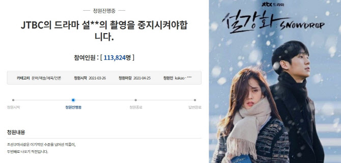 더욱 의문을 가지면서 팬들이 직접 성명문을 통해 설강화의 제작 및 방영을 반대하기도 했는데요