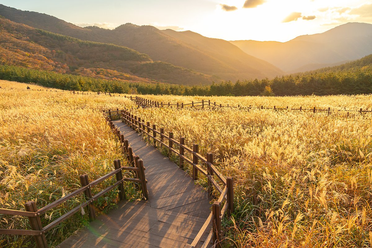 이국적인 풍경을 담고 있는 가을 대표 여행지는 누가 뭐라고 해도 영남알프스 정상 부근을 황금빛으로 물들이는 울산 간월재입니다. 선선한 바람이 불어오는 특히나 붉고 짙은 일몰이 억새 평원을 비추는 소름 돋는 풍광을 구경할 수 있는 대표 여행지였어요.