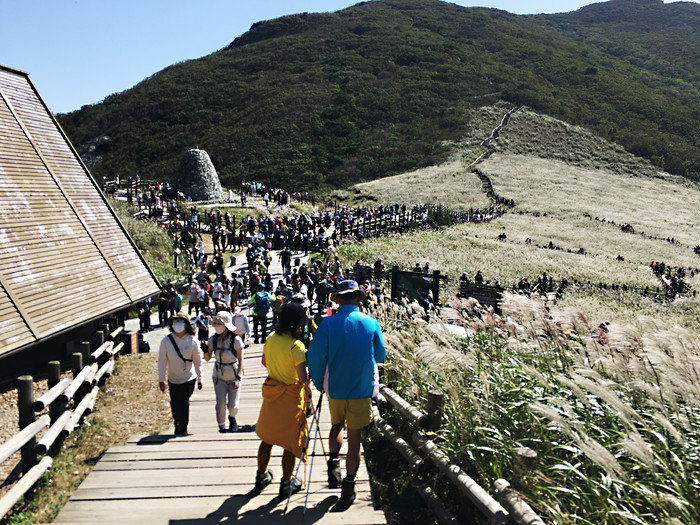 도착하는 순간 은은한 황금빛으로 물든 억새평원이 펼쳐져 있는 이색적인 풍광을 구경할 수 있어서 힘듦이 잊혀졌고요. 그 사이로는 산책로를 만들어 놔서 쉬엄쉬엄 주변 풍경을 감상하면서 걷기 좋았어요.