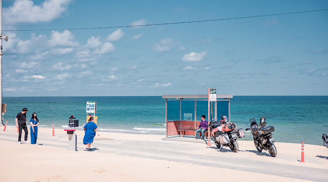 바다를 천천히 걸어보는 것만으로도 힐링이다. 향호해변 근처에는 BTS가 사진을 찍어 유명해진 BTS 버스정류장이 있어 인생샷을 찍는 곳으로도 유명하다.