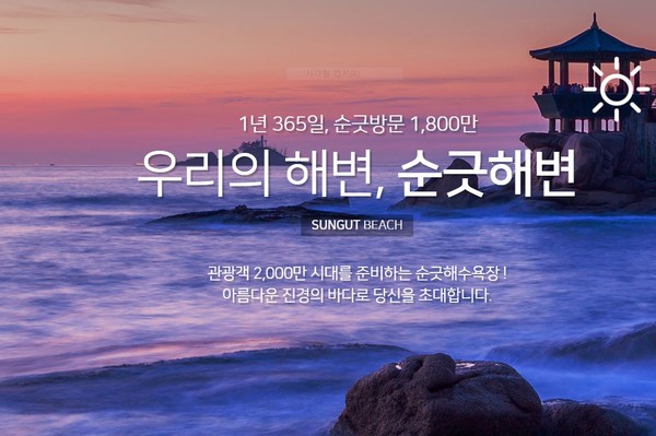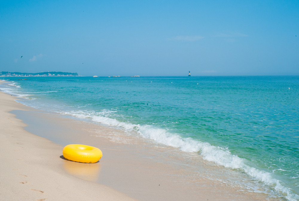 순긋 해변은 청량한 바다와 함께 파라솔을 피사체 사진을 찍으면 드라마틱하게 연출된다.