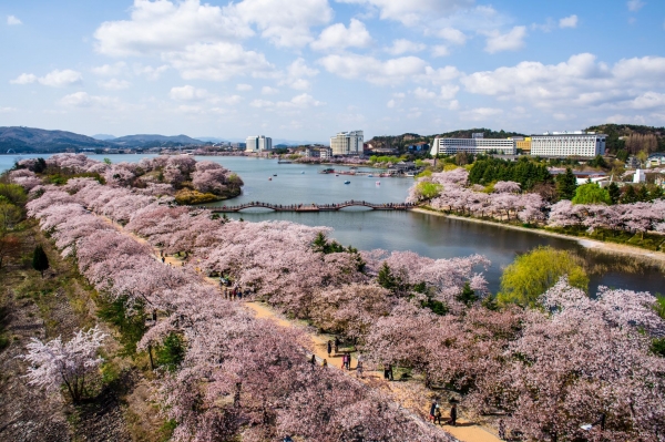 인공연못에 펼쳐진 벚꽃들은 봄이면 젊은이들로 붐비고, 여름에는 연꽃이 관광객들을 유혹하고,