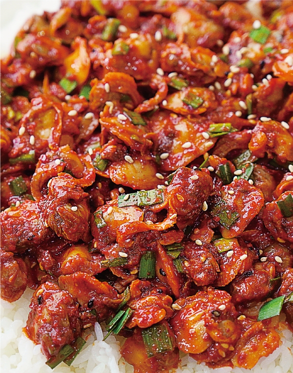 양념장에 삶은 꼬막을 넣어 무쳐주세요. 살짝 식은 밥 위에 꼬막무침을 넉넉히 올린 후 참기름 반 큰 술을 두르고 통깨•깻가루•송송 썬 쪽파 적당량을 뿌린 후 취향에 따라 곱창김 곁들여주시면 좋다고해요.