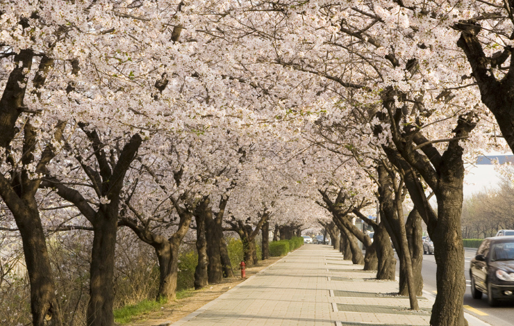 벚꽃길 모두 우측 일방으로만 통행할 수 있다.