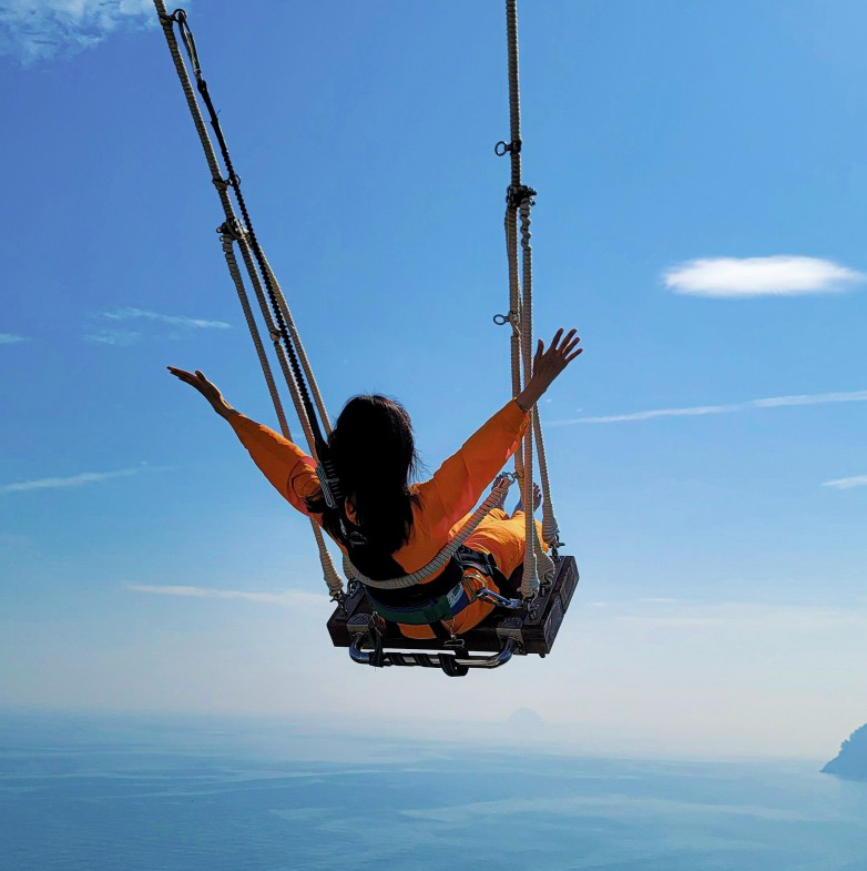 입장료를 지불하면 엘리베이터를 타고 남해 설리스카이워크 위로 오르게 된다. 교량 끝에는 스릴을 만끽해볼 수 있는 그네가 매달려 있는데 그네 이용권 안에 입장료가 포함되어 있으며 그 비용도 그리 비싼 편은 아닌지라 궁금하신 분들은 함께 이용해보셔도 좋을 듯 싶다.