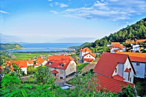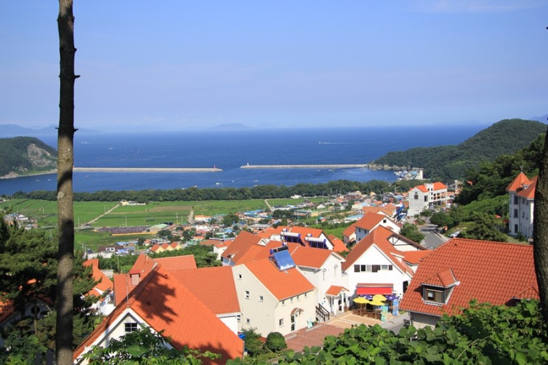 남해를 대표하는 곳 중 하나는 누가 뭐래도 이곳 남해 독일마을이다. 물건리 마을 위쪽 언덕을 따라 주황색 지붕을 얹은 집들이 옹기종기 모여서 마을을 이루고 있는데 바다와 어우러져 있는 이국적인 풍경 때문에 인기가 많다.