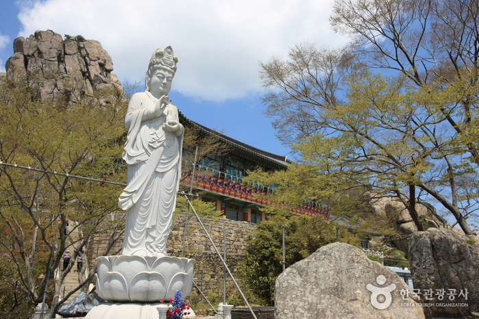 음성굴을 둘러보고 다시 보리암으로 돌아와 남해를 내려다보고 있는 해수관음상을 만났다. 기암괴석과 어우러진 풍광이 정말 입이 떡 벌어질 정도로 멋졌다. 일출이 유명한 곳이지만 일출이 아니어도 한 번쯤 오를만한 가치가 있는 남해 여행코스라 할 수 있다.