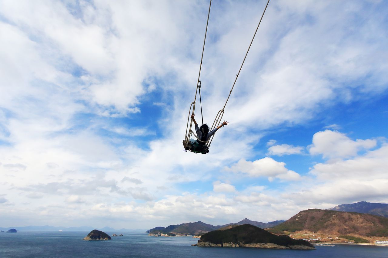 인도네시아 발리의 명물인 스윙 그네를 모티브로 해서 제작한 그네로 스카이워크 끝에 설치되어 있어 그네를 타면 바다까지 뻗어 나가 굉장히 아찔하면서도 색다른 재미를 선사하는 남해 가볼만한곳이다.