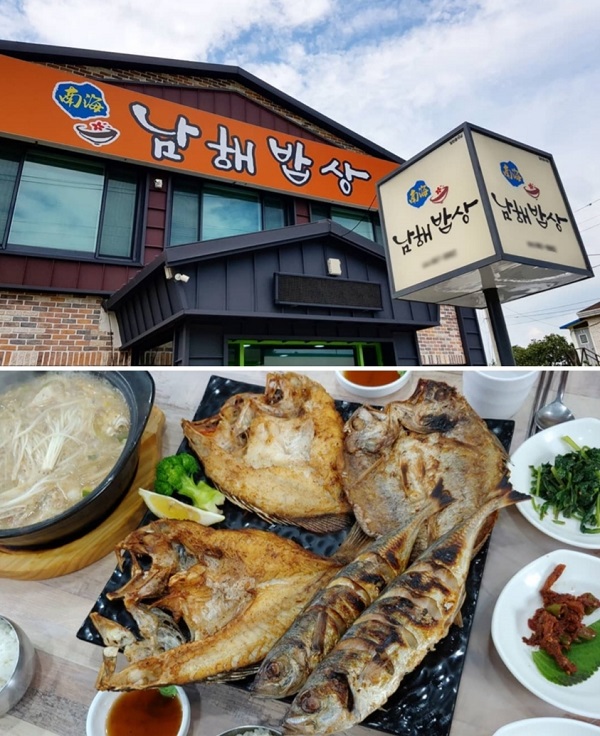 점심을 먹으러 간 곳은 남해 먹거리를 즐길 수 있는 향토음식점 남해밥상이다. 남해 하면 '멸치'요리를 꼭 먹어야 하는데 멸치요리 맛집으로 소문난 곳이다.