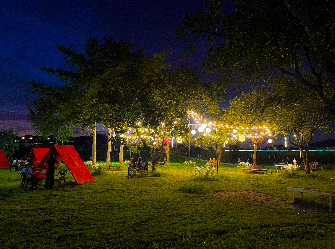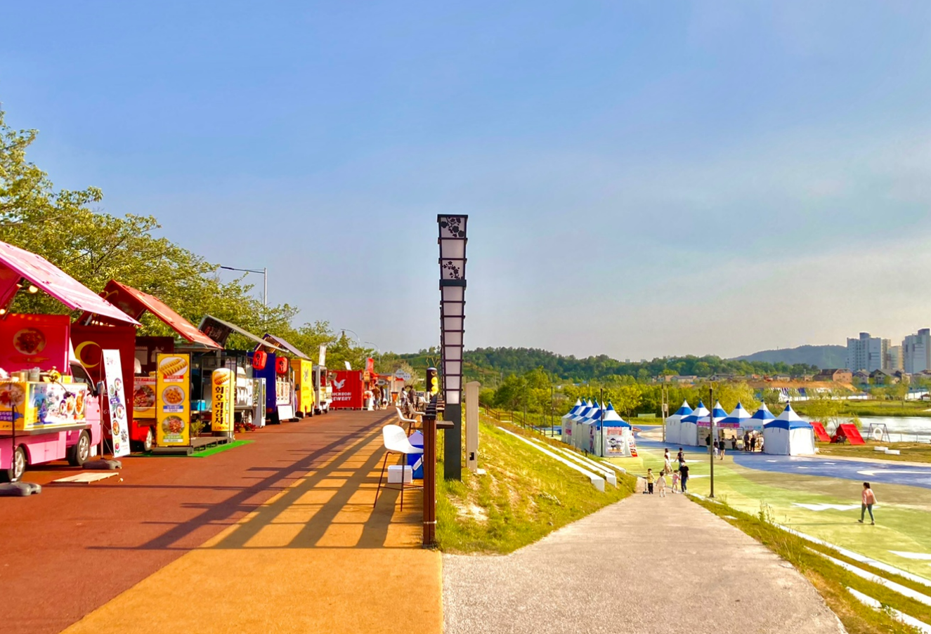 판매점 근처 호수공원에는 테이블이 놓여 있어 호수공원을 바라보거나 공연을 보면서 음식을 먹을 수 있습니다. 야시장 배치도가 있으니 처음 방문하시는 분도 순천만달밤야시장을 더욱 즐겁게 즐길 수 있습니다. 순천시민들이 직접 운영하는 플리마켓도 열리니 다양한 상품들을 구경해 보세요.
