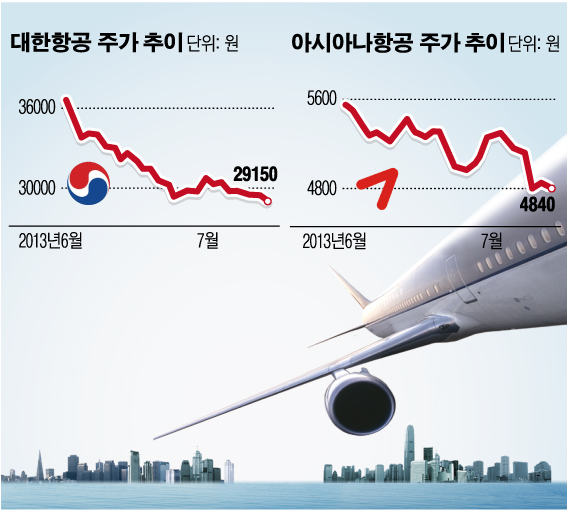 실제로 대한항공은 한국거래소에서 지난 11월 30일 5만6500원으로 거래를 마쳤는데, 이는 2만6400원으로 장을 마감한 지난 5월 4일 이후 약 7개월 만에 가장 낮은 종가 기록이다.