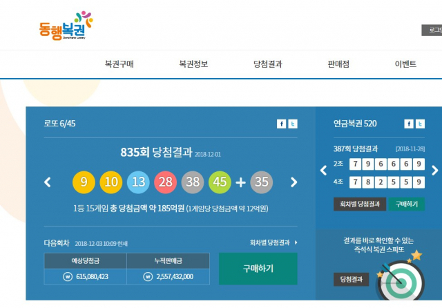 이제는 동행 복권 홈페이지를 통해 간편하게 즐겨보시길 바라요~