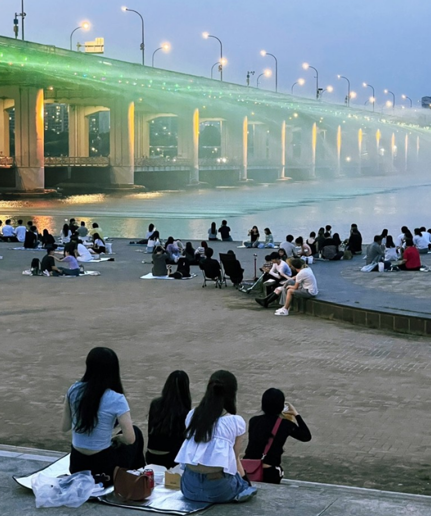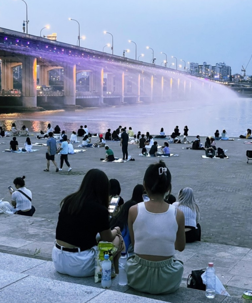 돗자리를 깔고 반포 한강공원 분수쇼를 구경하면 좀 더 편하고 잼있는 관람을 할 수있습니다.