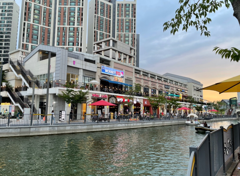 상가의 건물에서 내뿜는 조명과, 수로를 따라 흐르는 조명이 어우러져 만들어내는 야경은 마치 외국에 있는 착각을 불러일으키게 한다.