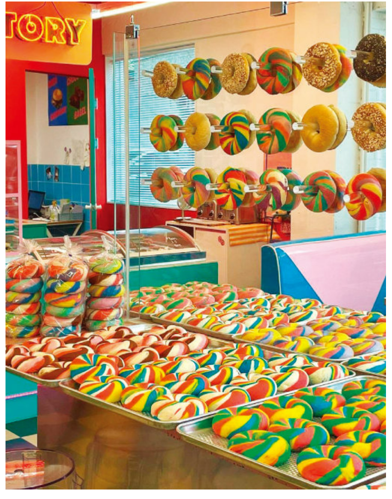 ‘키치함’을 베이글에 옮기면 바로 이 가게가 아닐까. 대구의 조용한 주택가 사이에 자리한 쨍한 색감의 ‘트룰리베이커’ 얘기다. 체커보드 바닥과 그라피티로 장식된 벽, 곳곳에 붙은 힙한 포스터가 미국 하이틴 드라마에 나오는 햄버거 가게를 떠오르게 한다. 대표 메뉴는 역시나 알록달록한 ‘레인보우 베이글’. 음식을 입으로만 먹나, 눈으로도 먹지! 레인보우 베이글에 ‘허니 레인보우 크림치즈’를 더한다면 특별한 날을 위한 홈 파티 음식으로 제격이다. 택배 주문도 가능하니 주방이 칙칙하다면 식탁에 화사한 수제 베이글을 들여놔도 좋겠다.