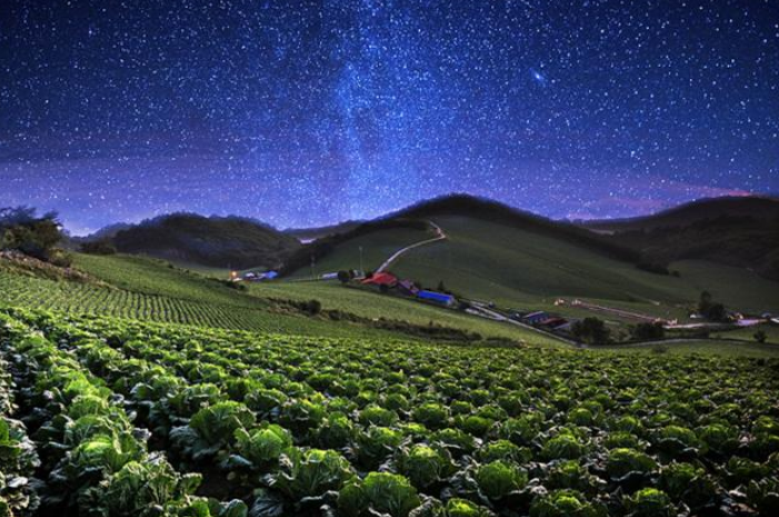첫손에 꼽히는 곳은 ‘하늘 아래 첫 동네’라 불리는 강릉 안반데기다. ‘안반’은 떡을 칠 때 아래에 받치는 넓은 나무판을 가리킨다. 해발 1,100m 고지대지만 안반데기 지형이 꼭 그렇게 생겼다. 평평한 땅과 완만한 경사지는 전국 최대 규모의 고랭지 채소 재배 단지다. 언덕 꼭대기인 ‘멍에전망대’에 오르면 밤하늘뿐만 아니라 사방으로 전망이 시원하다. 농로를 겸하는 시멘트 포장도로가 잘 닦여 있지만, 마주 오는 차량을 만나면 비켜가기 힘들다. 한곳에 정차하고 걸어 다닐 것을 권한다.