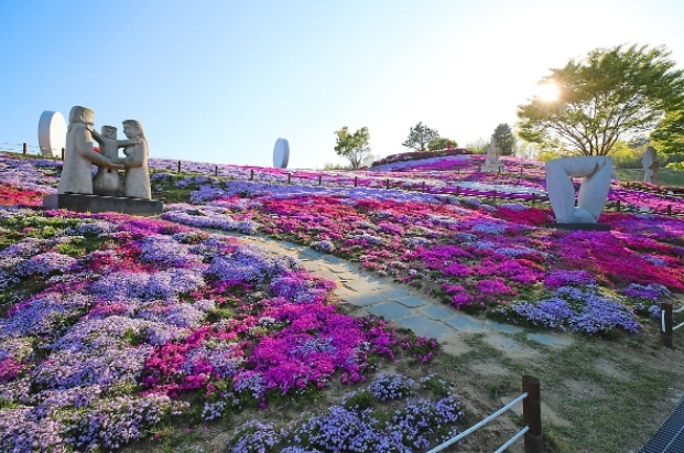 경남 산청군에 있는 생초국제조각공원은 매년 4월이면 화사한 꽃 잔디로 뒤덮인다. 이 조각공원은 문화와 자연이 잘 어우러진 특색 있는 문화예술 공원이다. 2만5000㎡ 규모의 공원 터에는 화려한 분홍색 카펫이 깔린 듯 진달래가 만개해 있고, 더불어 국내외 세계적인 조각가들의 현대조각품 20여 점이 곳곳에 전시하고 있어 마치 야외 미술관을 연상케 한다. 스탠포드 호텔&리조트 통영은 공원에서 차량으로 1시간 정도 걸린다. 한려수도가 내려다보이는 사계절 인피니티 풀 ‘몰디브’이 인기다.