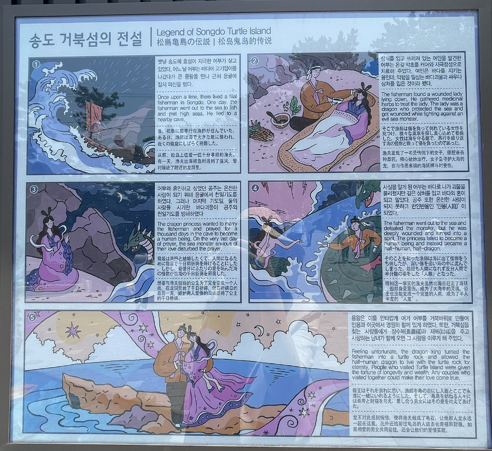 거북섬에는 용왕의 딸과 어부의 슬픈 사랑 전설이 내려온다. 더불어 이곳을 찾는 사람에게는 재물복과 장수의 기운을 준다고 한다. 송도구름산책로를 통해 거북섬에 닿게 된다면 소중한 사람을 떠올리며 소원을 빌어보자.