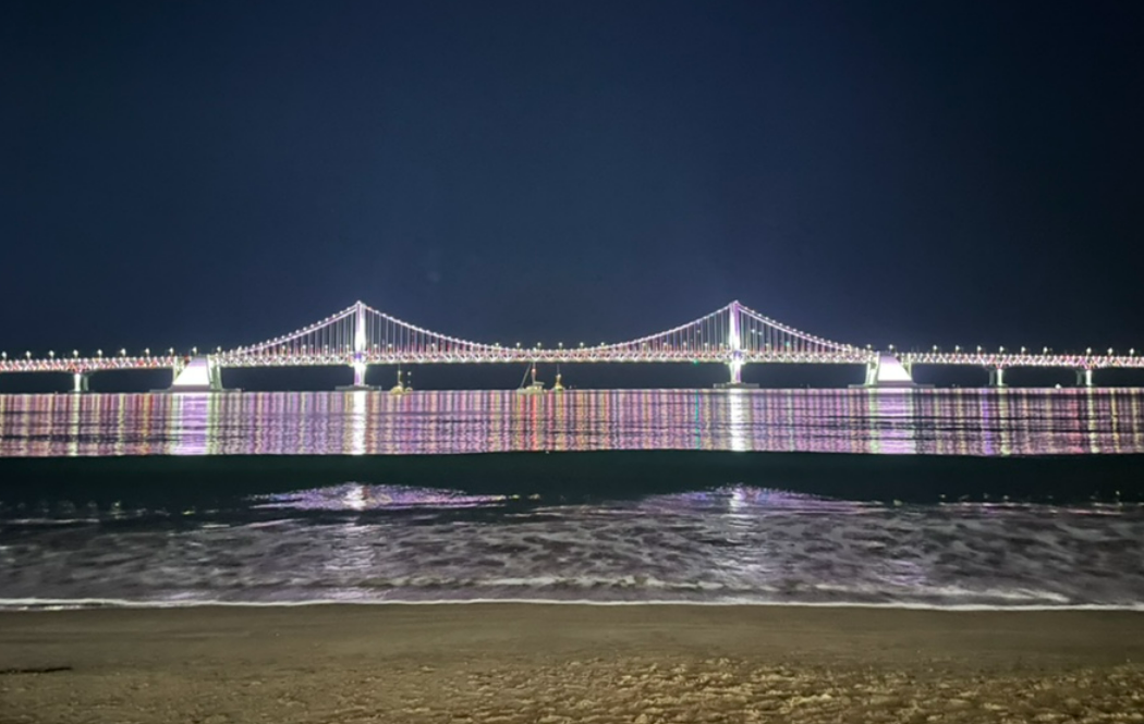 광안대교 점등시간은 일~목요일은 밤 12시, 금~토요일은 새벽 2시 이후로 점등한다고 한다.