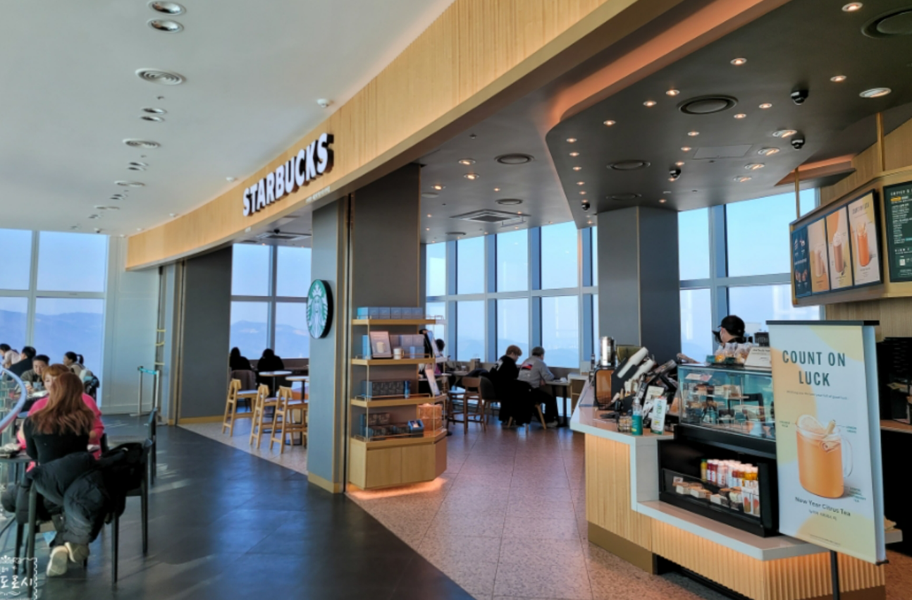 엑스더스카이는 세계에서 가장 높은 스타벅스가 있습니다. 스타벅스는 한층 높이 위에 있어서 99층에 있는 것이 있습니다.