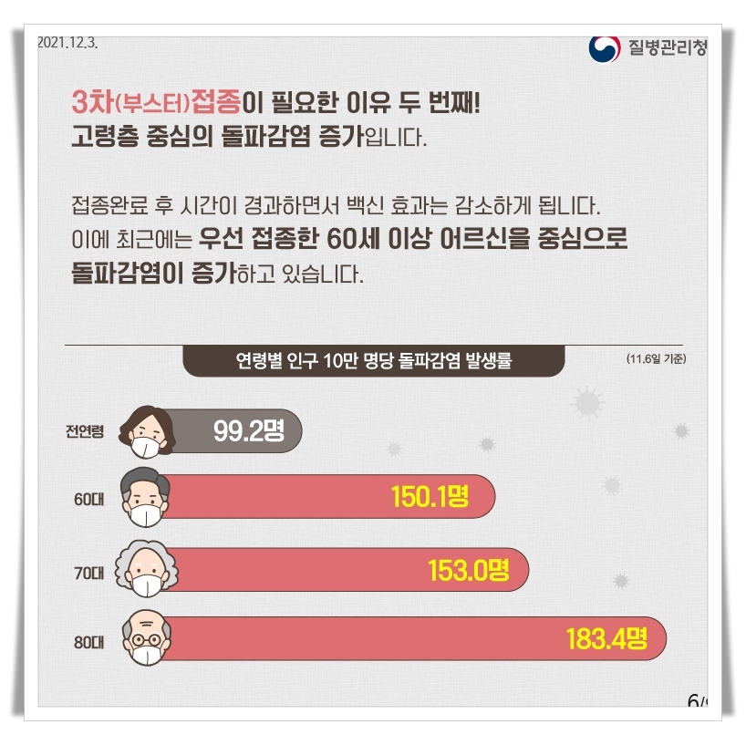 두번째 이유는 바로 돌파감염 때문입니다. 처음 백신을 접종했던 고령층에서 돌파감염이 발생하기 때문입니다.