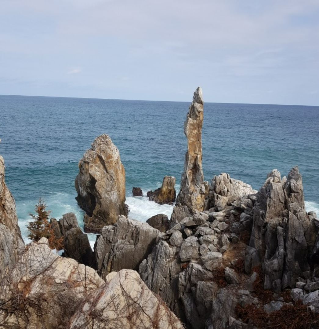 삼척가볼만한곳 추암해수욕장 근처 해안에 있는 촛대바위는 촛대 모양과 비슷한 형상을 하고 있는데요. 그리고 이곳에 가면 잠자는 거인바위, 코끼리바위, 양머리바위 등 다양한 모양의 라피에를 볼 수 있다고 해요! 라피에란 석회암이 지하수의 용식작용을 받아 형성된 암석기둥이랍니다. 특히 삼척의 경우에는 깨끗한 바다와 함께 자연이 만든 경관을 감상을 할 수 있는데요. 512m 데크길과 56m 출렁다리 등 길이 잘 조성이 되어 있어 해안절경의 감동을 느낄 수 있답니다.