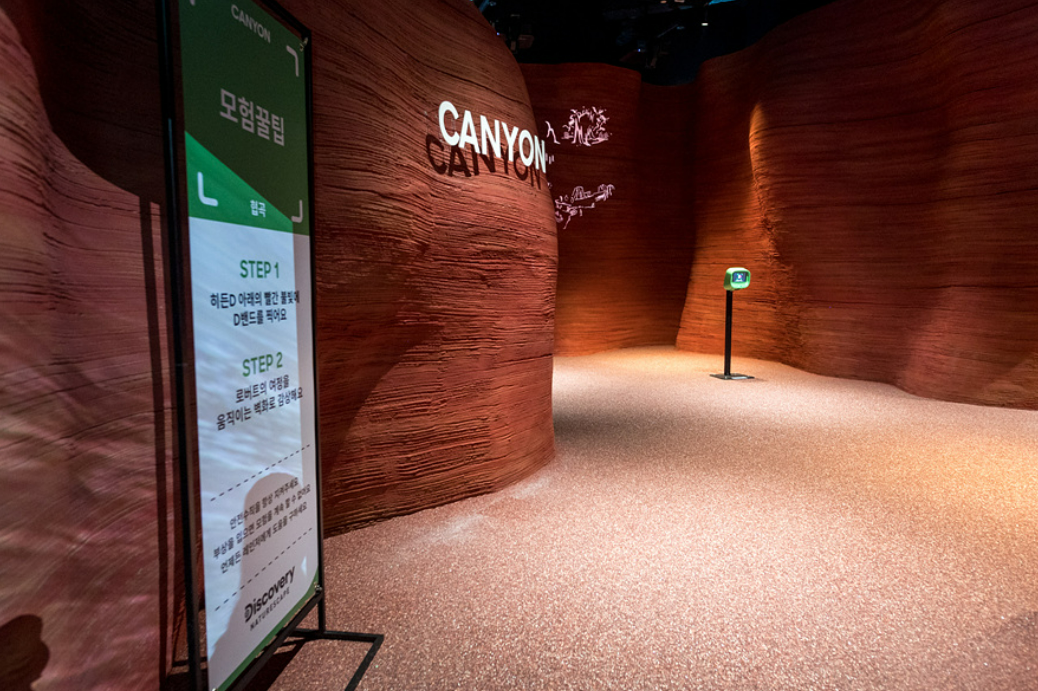 위대한 모험가들의 발자취를 찾아 본격적인 모험이 시작되는 '셔틀'라는 공간을 만났다. 대자연의 세계를 체험할 수 있는 곳으로 가장 먼저 벽과 바닥을 통해 재생되는 영상을 구경하다 보면 마치 비행기를 타고 이동하는 기분도 들었다.