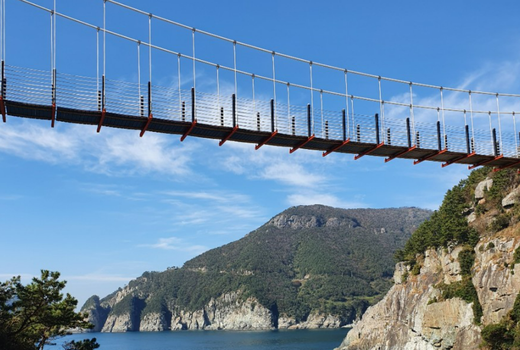 욕지도에는 총 3개의 출렁다리가 있다. 그중에서도 가장 멋진 경관을 자랑하는 곳은 욕지항 근처의 제1 출렁다리다. 욕지도의 출렁다리는 적당히 흔들림이 있는 편이며, 걸어가는 동안 조금씩 바다의 모습이 보여 더욱 설렘이 느껴진다.