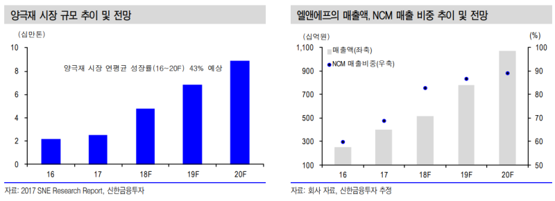 위한 엘앤에프의 양극재 생산능력도 2020년 2만톤에서 2023년 14만톤까지 확대될 것이라고 덧붙였다.