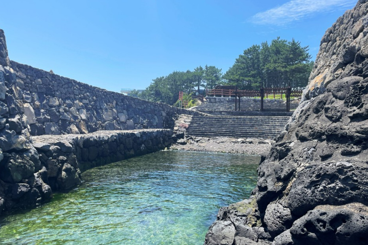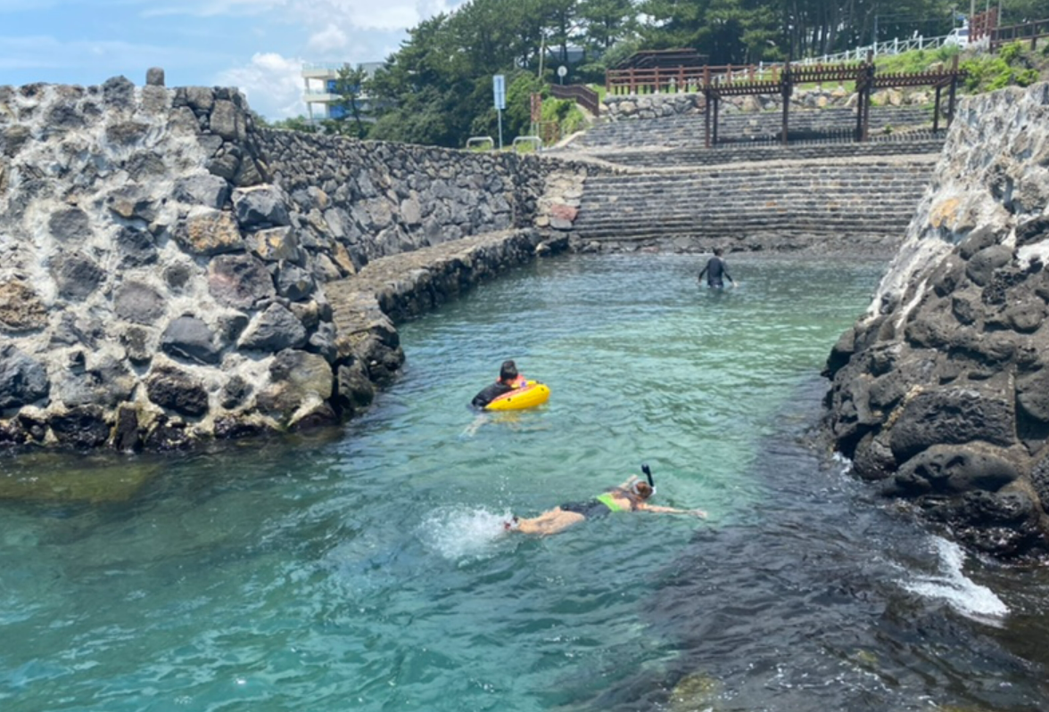제주 스노쿨링 포인트로 유명한 판포포구나 선녀탕처럼 주위 편의 시설이 잘되어 있는 것은 아니지만, 제주도민들과 올레꾼들에겐 여름철 최고의 피서지라고 한다.