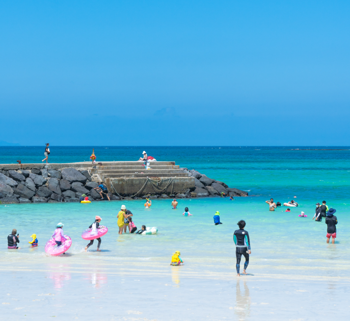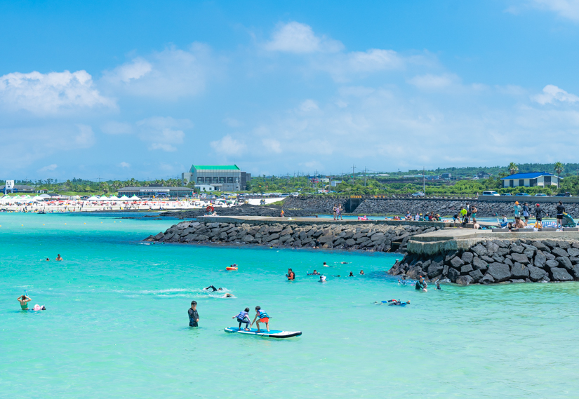얕은 수심과 잔잔한 파도로 아이들이 놀기 좋고